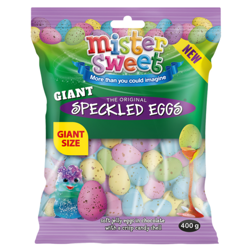 Mister Sweet speckled eggs are soft jelly eggs in chocolate with a crispy candy shell